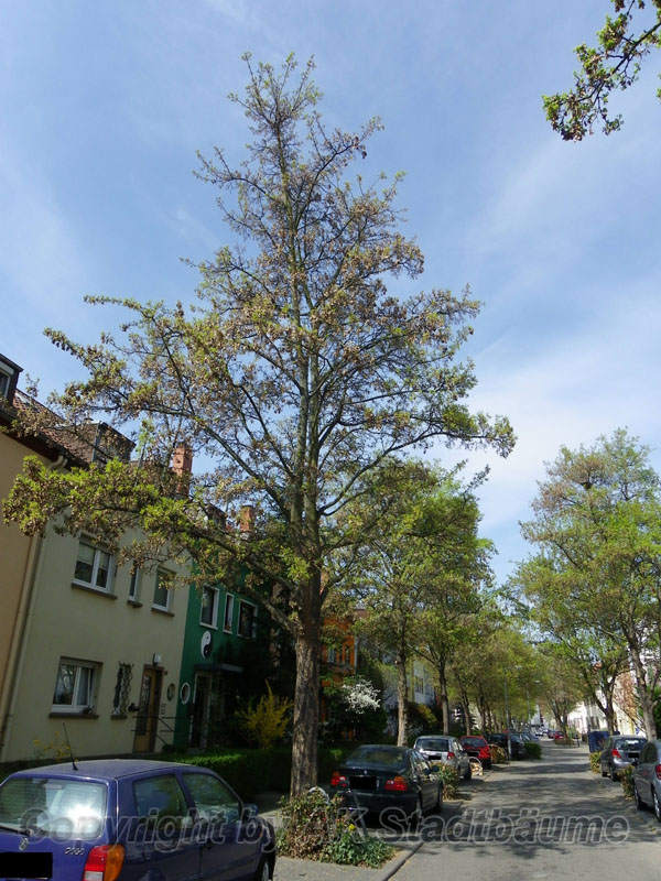 | Bemerkungen | eiförmige, unregelmäßige, im Alter mehr rundliche Krone, verträgt trockene Böden und hohen Versiegelungsgrad, guter Bodenbefestiger für Ufer bzw. Hanglagen, Bienenweide |